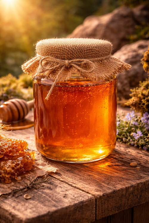 غلیظ و کهن: به دلیل ماندگاری طولانی در کندوی طبیعی، غلظت بالایی دارد.