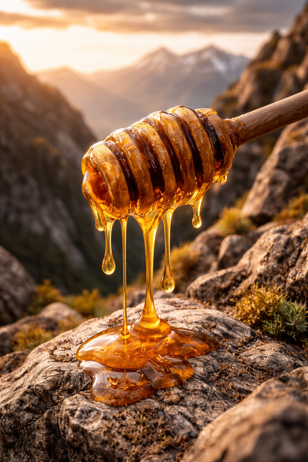 غلیظ و کهن: به دلیل ماندگاری طولانی در کندوی طبیعی، غلظت بالایی دارد.