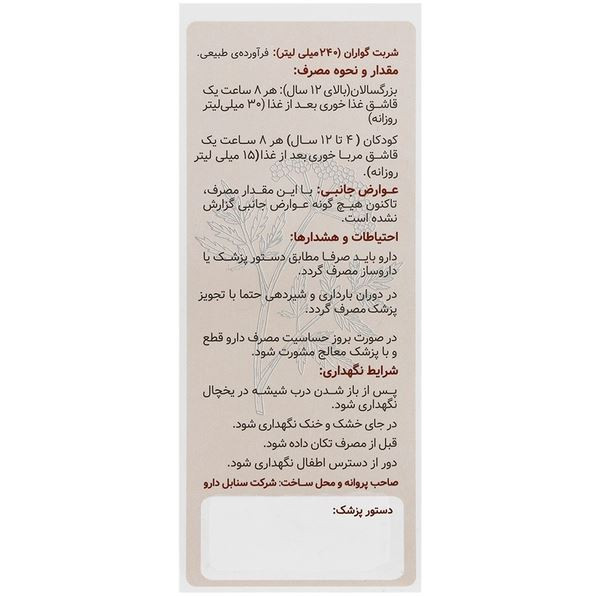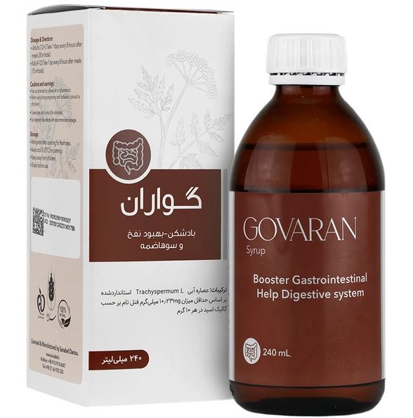 - شربت ضد نفخ گواران جهت کمک به بهبود علائم سوءهاضمه
