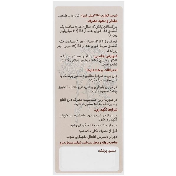 - شربت گواران جهت کمک به کاهش سنگینی و ناراحتی معده بعد از غذا